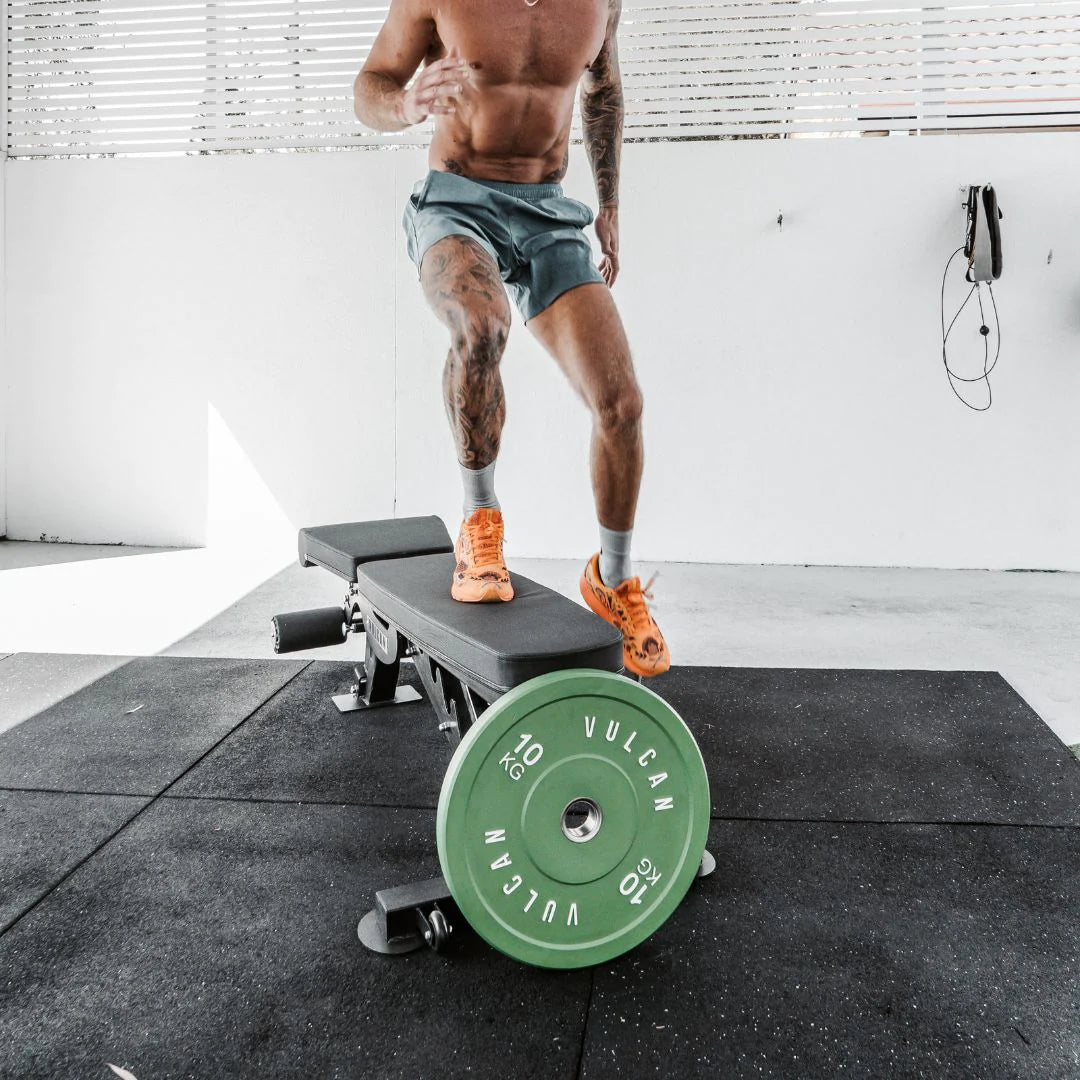 If you are looking to specialize in Olympic-style lifts (clean and jerk, snatches etc) then we recommend a barbell that has more sleeve spin (makes these lifts smoother and helps prevent injuries to the wrist and elbows). Check out the VULCAN Competition Barbell. Tips to look at when buying weight plates. We recommend bumper plates for a home gym. Bumper plates are made from rubber and are designed to be dropped from a height. This allows you to perform deadlifts or Olympic lifts without fear of breaking your equipment. They also make less noise than traditional iron/steel plates, which is an important consideration if you are going to be working out at all hours of the day and night.Β