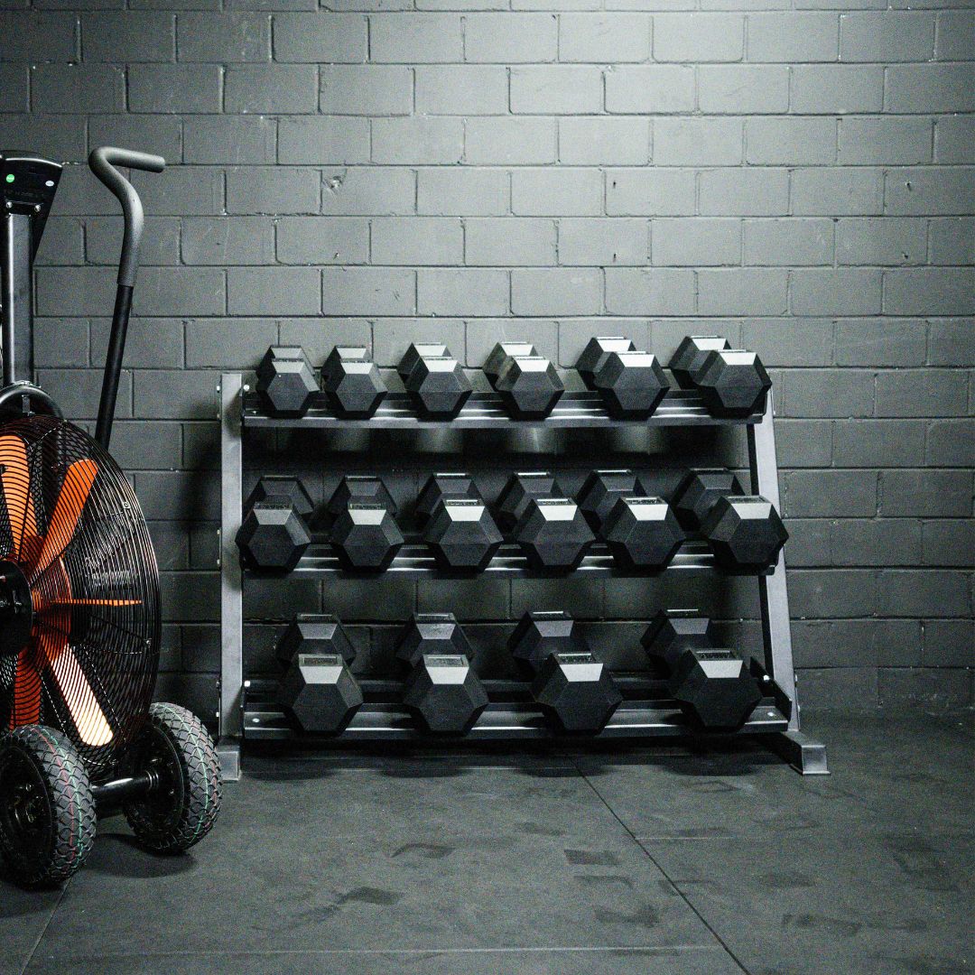 Storage is also important! Although one of the benefits of owning your home gym is being able to leave whatever weights you want lying around, we think a clean and organised home just hits differently.Β
