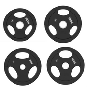VULCAN Olympic Trigrip Plates have been tested to the max by our staff, coaches and athletes. Featuring stainless steel inserts and 3 strategically placed handles for maximum comfort in loading weights and allowing for many more exercises! The VULCAN Trigrip Plates are made out of steel with a rubber coating so they are space affording on the barbell! These plates can withstand low intensity drops but we would not recommend dropping/ dumping of the plates, if you would like to check out plates that are meant to be dropped pop over to our VULCAN Olympic Bumper Plates.