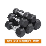 Hex design for maximum convenience: Classic, rubber coated hex design that is quiet and easy on the floors. The hex design also eliminates rolling and makes for easy storage in your gym.