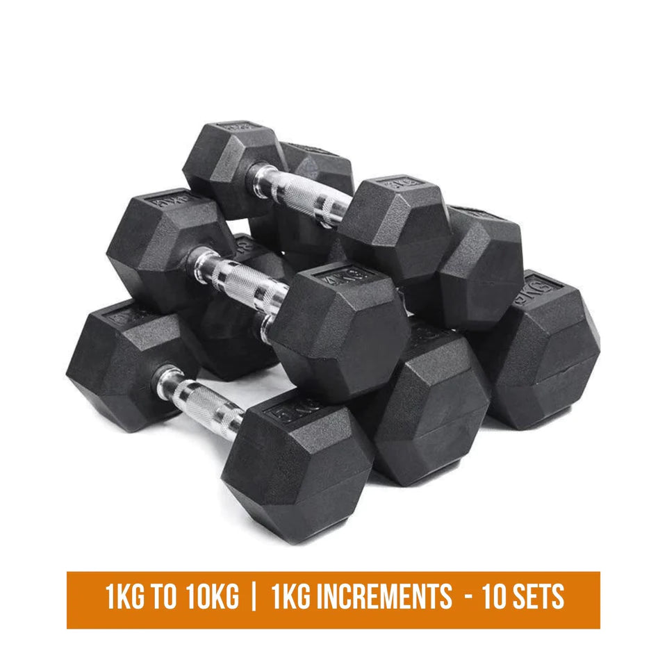 Our dumbbells are made from natural rubber and heads are attached using friction welding (rather than electrical welding) ensuring a highly durable product.