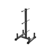 The Olympic Plates and Barbell tree is a perfect addition for any home gym or commercial gym looking for storage facilities. The tree has 6 pegs to accommodate up to 450kg of Olympic Plates and room for 4 Olympic Barbells. Designed with stability and ergonomics in mind, this storage equipment is efficient and the perfect storage solution.