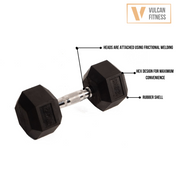 The VULCAN Rubber Hex Dumbbells are made by a one-piece forged construction, giving you the ultimate workout and safety knowing that your dumbbells are the best quality. Coated handles are ergonomically designed to handle extreme workouts at commercial or home gym.