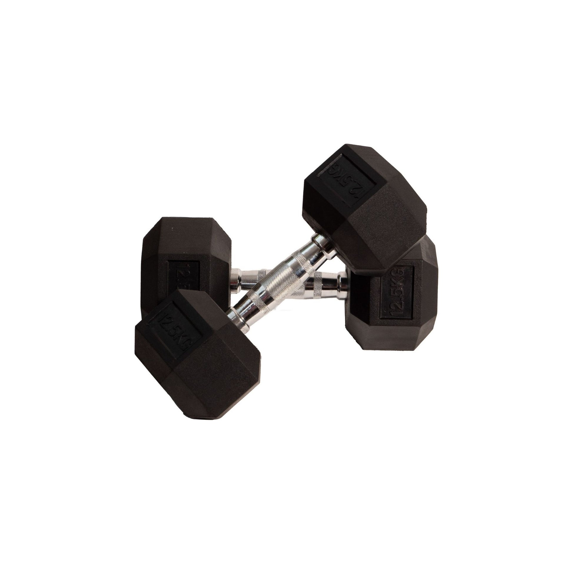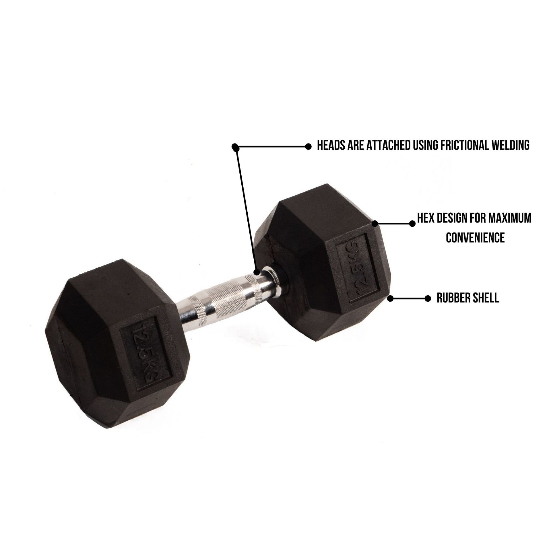 Our dumbbells are made from natural rubber and heads are attached using friction welding (rather than electrical welding) ensuring a highly durable product.