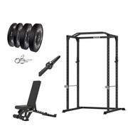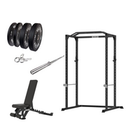 VULCAN Home Gym Power Cage, Olympic Barbell, 100kg Black Bumper Weight Plates & Commercial FID Bench | IN STOCK