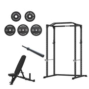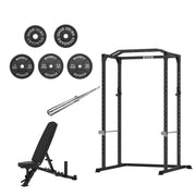VULCAN Home Gym Power Cage, Olympic Barbell, 150kg Machined Olympic Iron Plates & Pro Adjustable Bench | IN STOCK