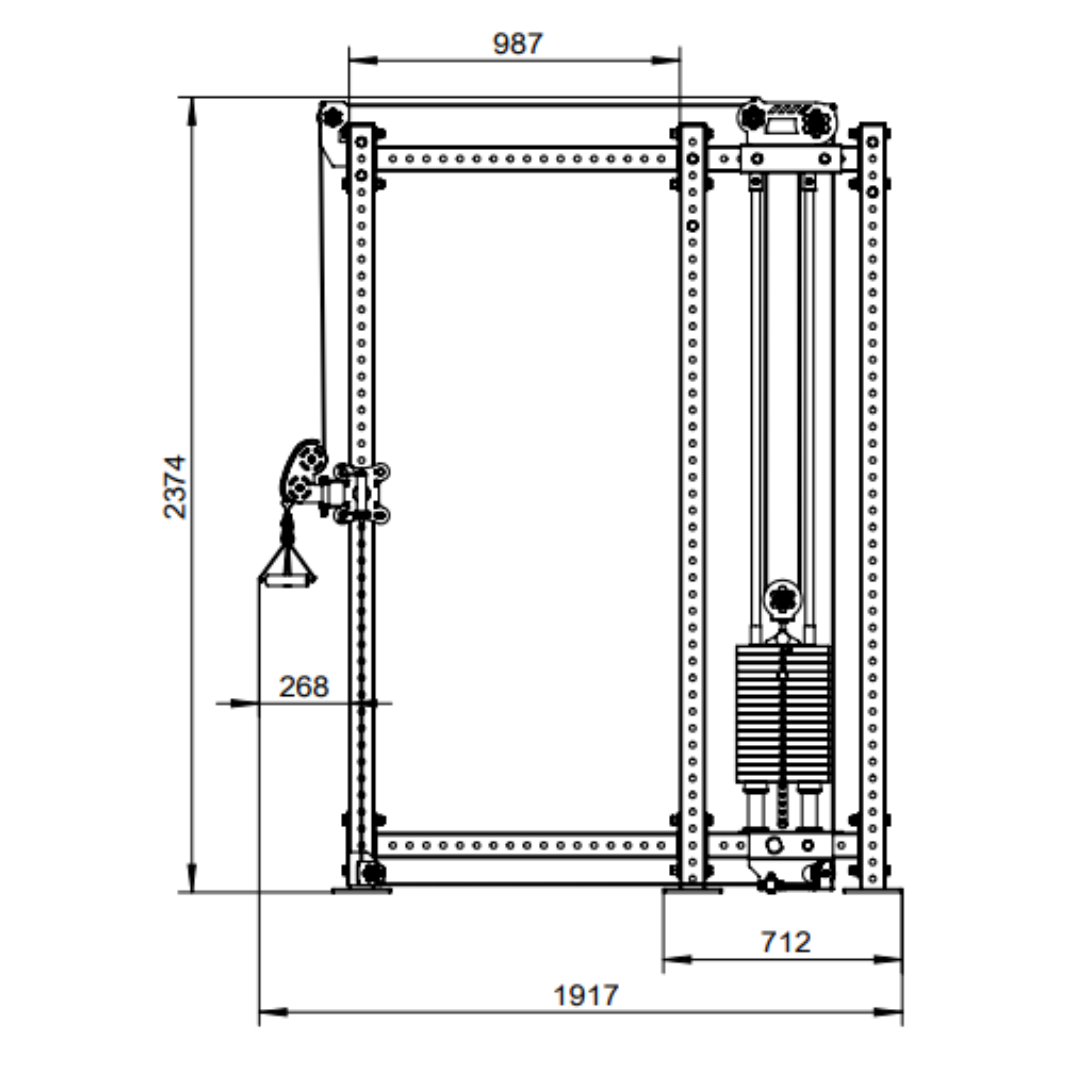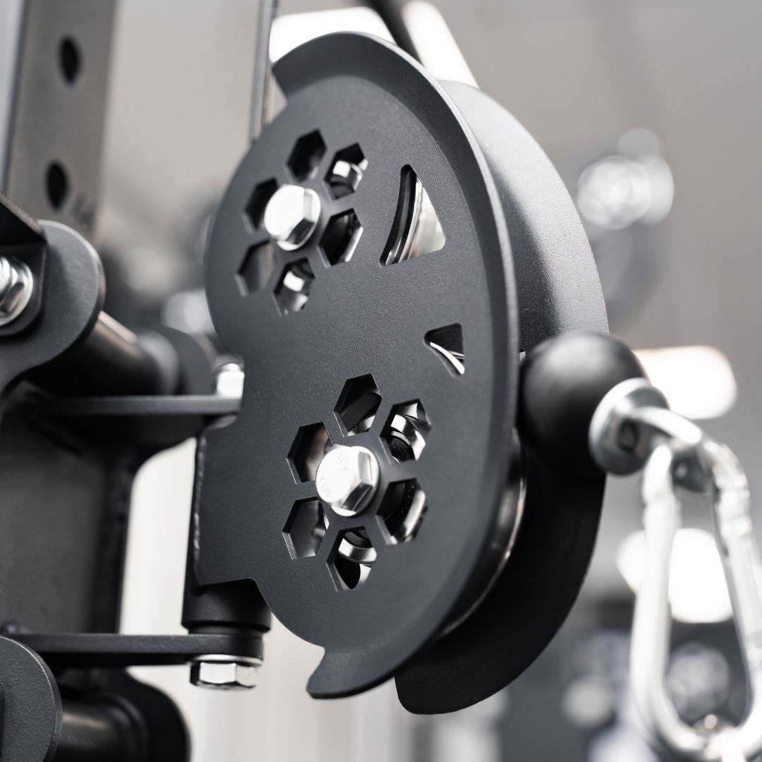 Our advanced bearing trolley features precision liners for friction-free movement up and down the uprights. Front pulley swivel 180-degrees allowing for increased versatility.