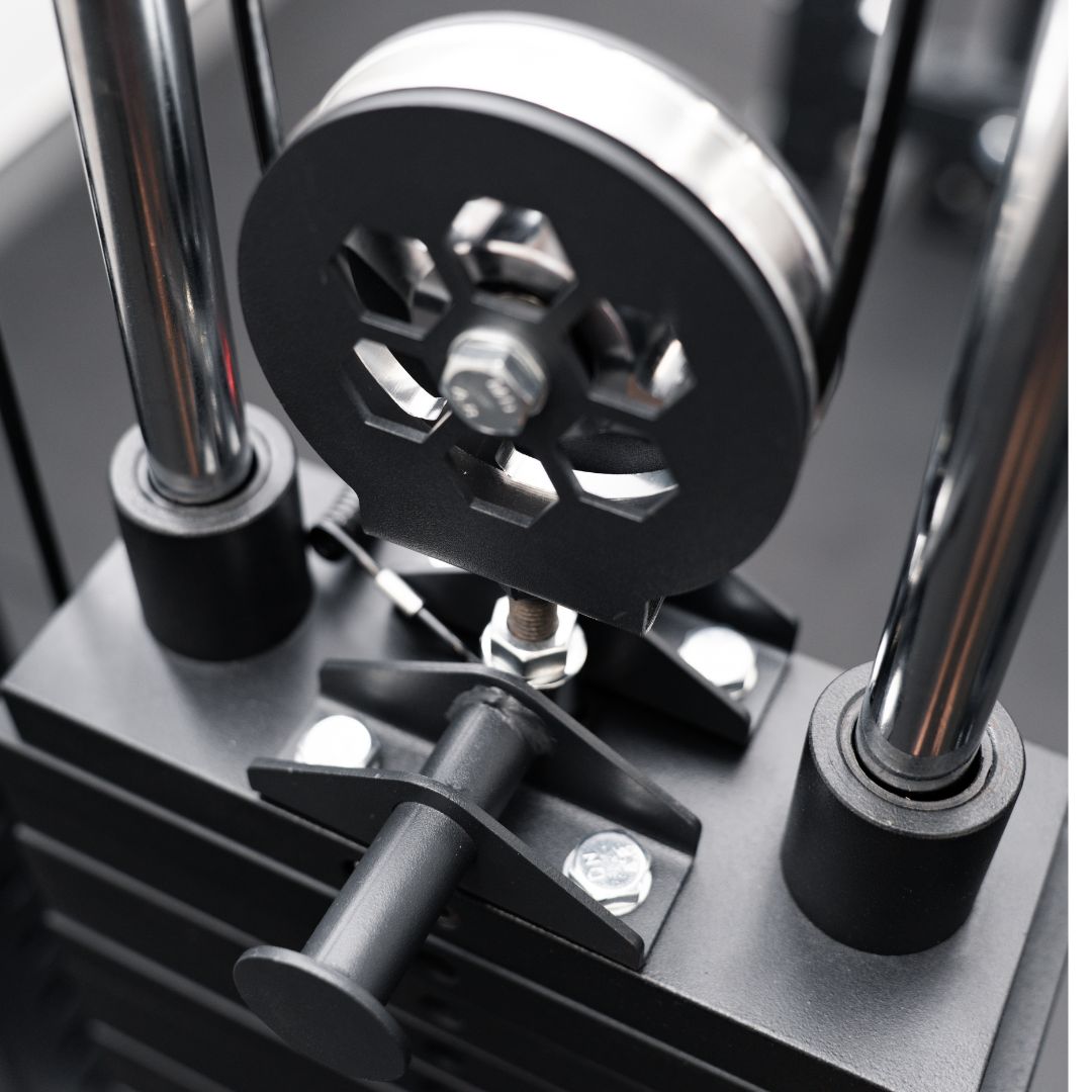 2x80kg or 2x105kg weight stacks at a 2:1 pulley ratio. Features commercial aluminium pulleys for smoother operation and added durability, and