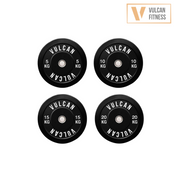 VULCAN Olympic Bumper Plates have been rigorously tested by coaches and athletes and are suitable for any type of workout. They are built to last, with hand trimmed edges for a smooth finish. The stainless steel inserts fit tightly on all Olympic size barbells. Created from 100% natural rubber, the VULCAN bumper plates are designed for low bounce and high durability.