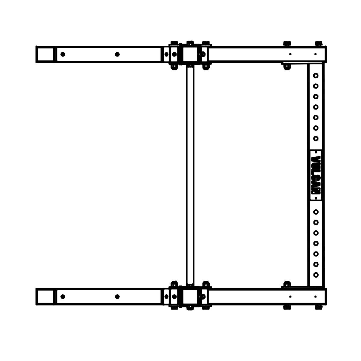 Gap between the holes is 25mm allowing for precise placement of safety arms and j-hooks. Particularly important for when setting your safety spotters to the correct height