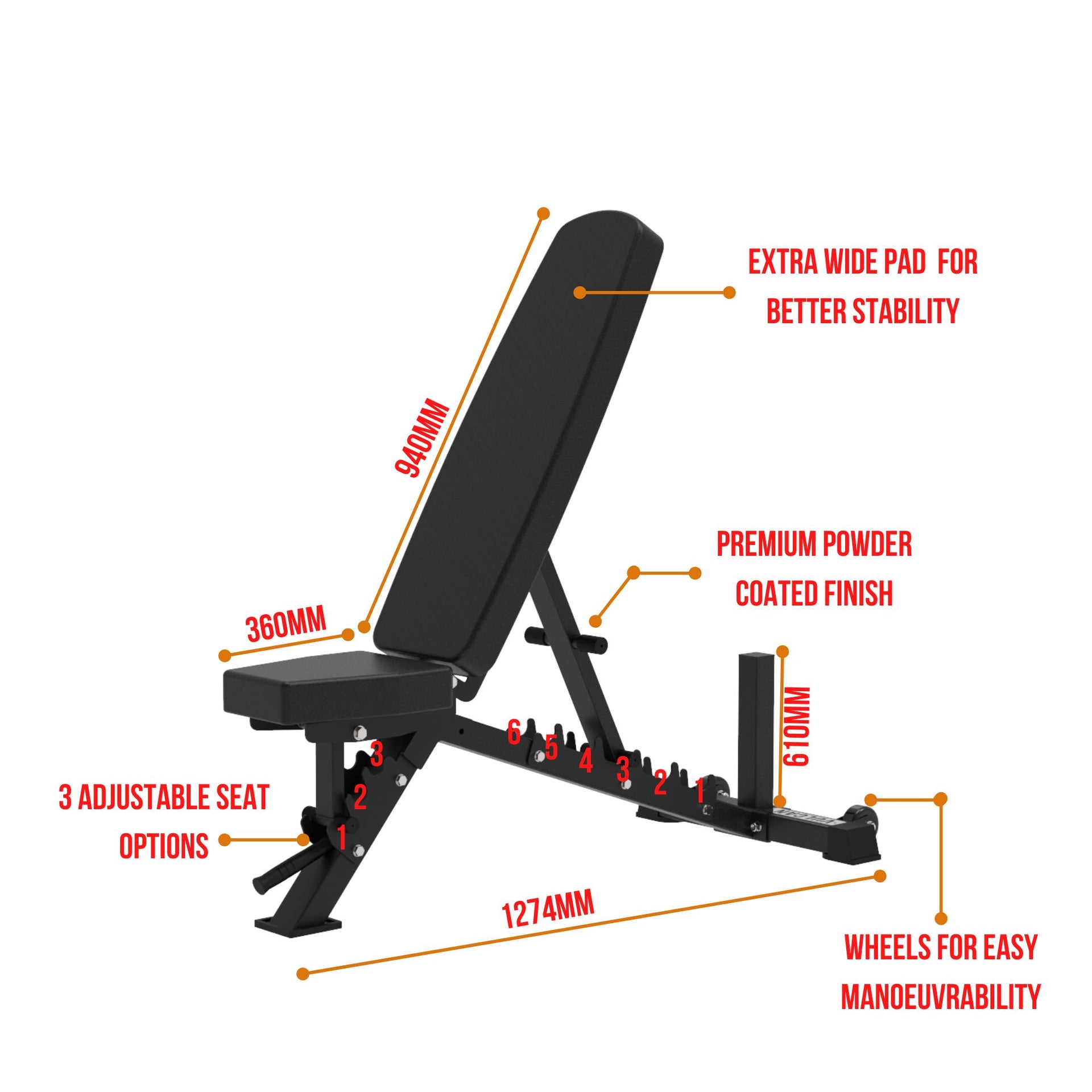 Weight Rated: The Pro Adjustable Bench is weight rated for a whooping 450kg!