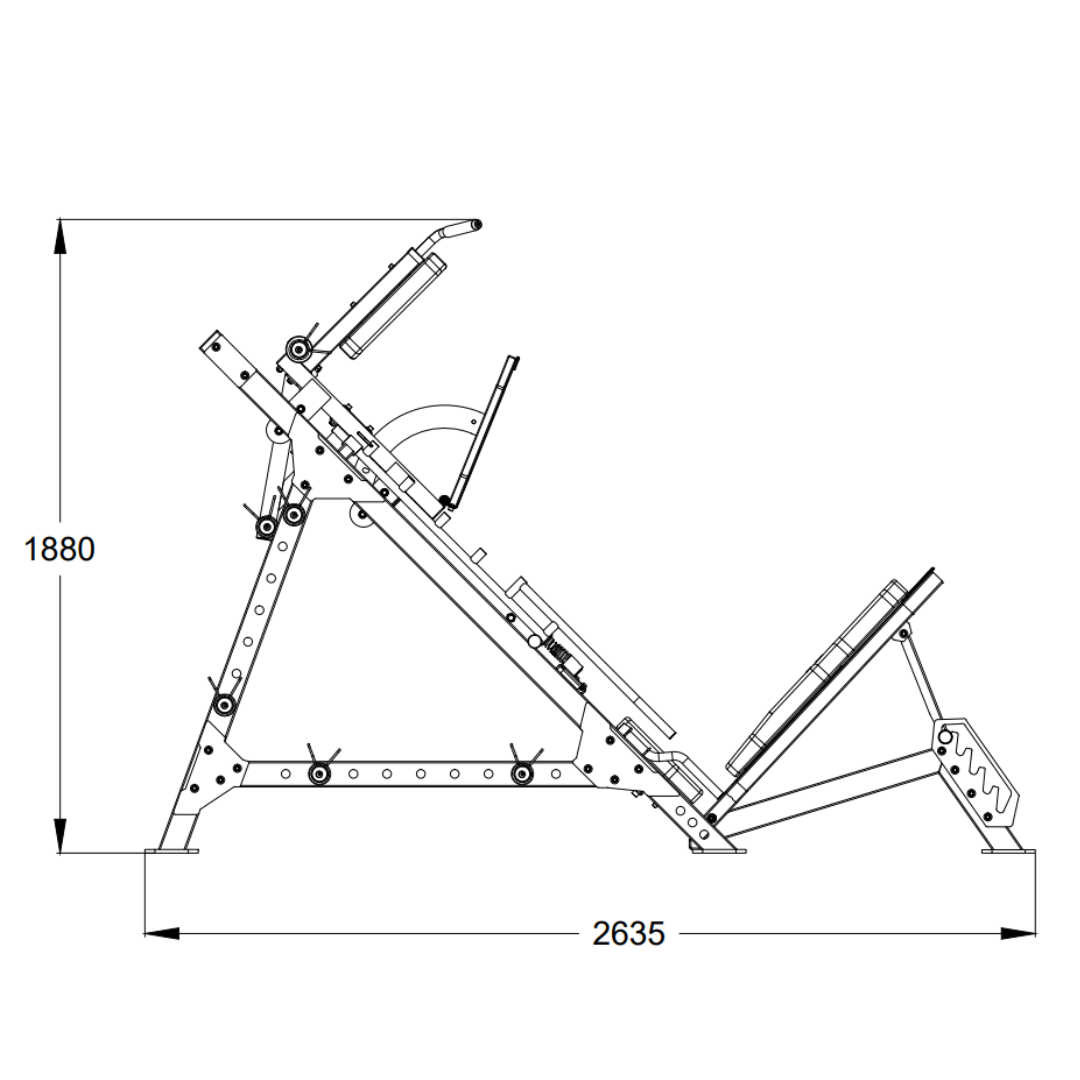 With 2200kg static weight testing the Leg Press & Hack Squat Combo Machine is built to last. Leg press and Hack-Squat up to 455kg, never limiting your leg day!