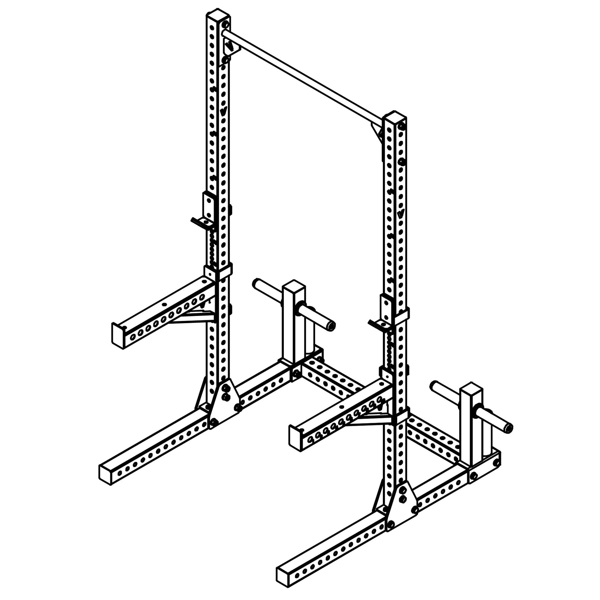 Gap between the holes is 25mm allowing for precise placement of safety arms and j-hooks. Particularly important for when setting your safety spotters to the correct height.