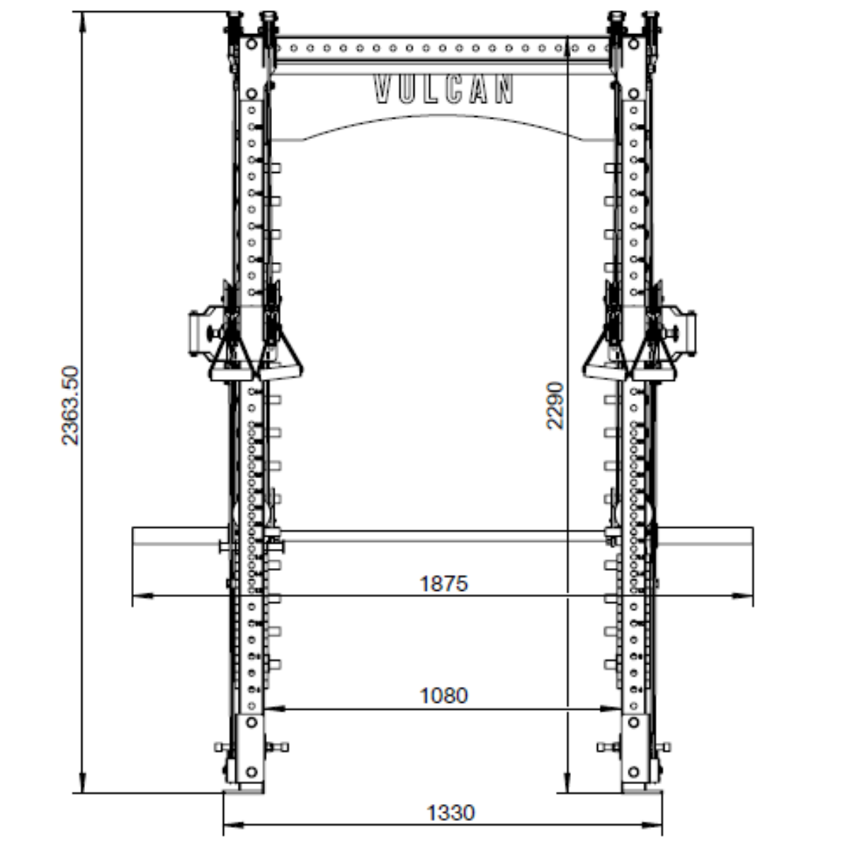 Smith Machine: Constructed with durability in mind, the VULCAN Smith Machine Attachment is crafted from high-grade steel, ensuring it can withstand the rigorous demands of a commercial gym setting. The attachment features a precision-engineered linear bearing system, providing a smooth, consistent movement that mimics the natural motion of the body. This not only enhances safety by reducing the risk of injury but also ensures an effective workout experience.