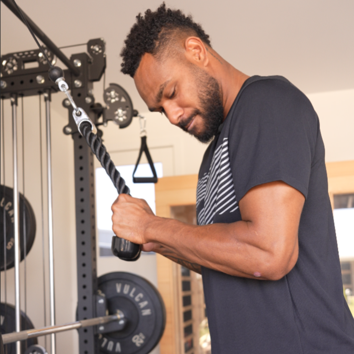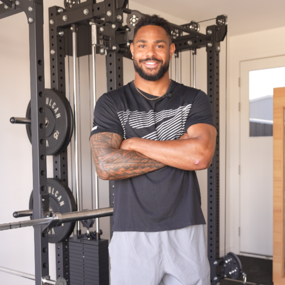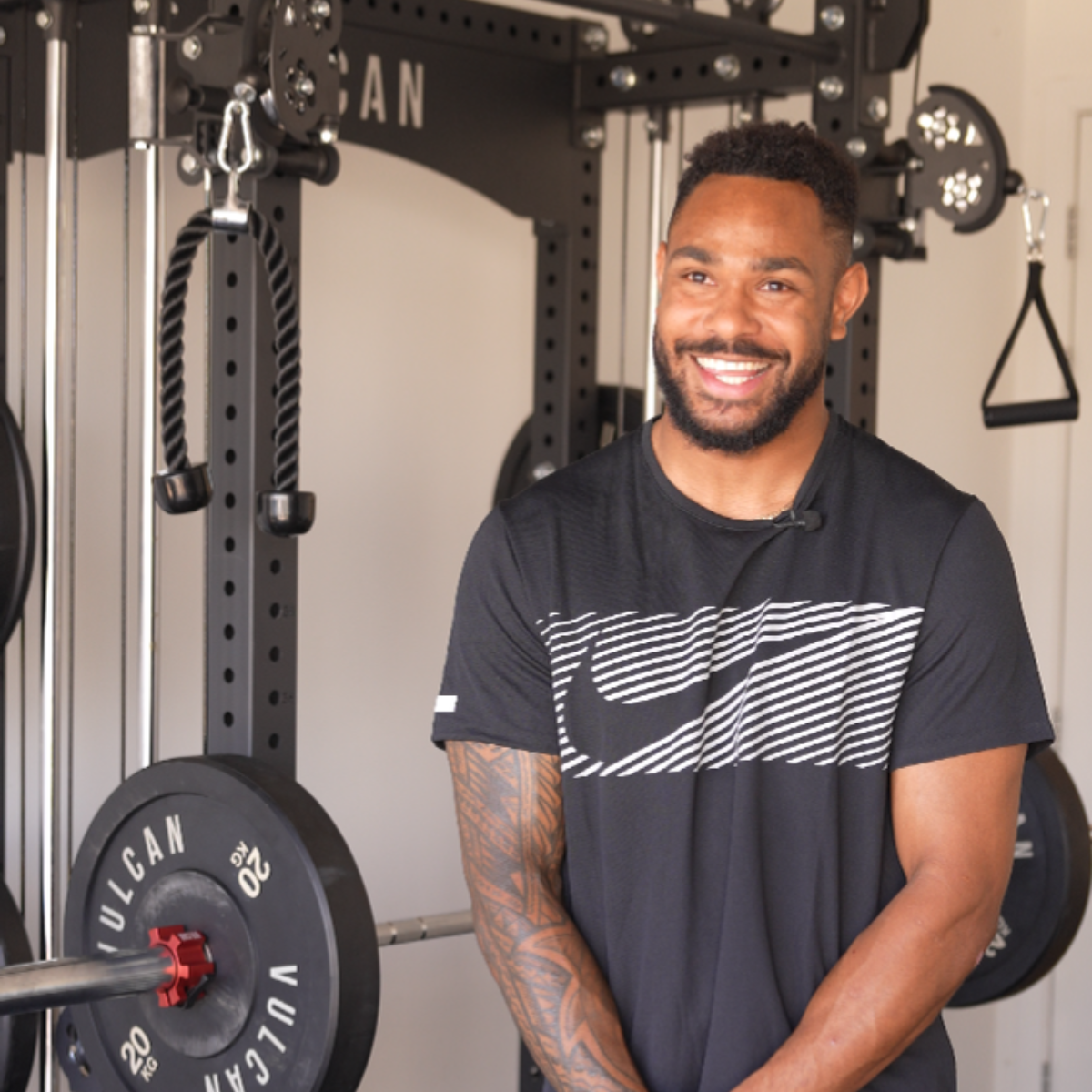 Hamiso Tabuai-Fidow is a Professional NRL footballer who plays as a fullback for the Dolphins, Queensland and soon to be Samoan National Team Representative. In the 2024 State of Origin series, the Hammer scored a hat-trick in Game 1 and is the only player to score in 6 consecutive Origin games from his debut. He managed 27 tries/ try assists in 21 appearances for the Dolphins in 2025! The Hammer has scored the first ever try for the Dolphins and is the clubs leading try scorer of all time! Fun Fact: He was selected in the Prime Minister's XIII in 2023. Hamiso has a well rounded setup with an Olympus Functional Trainer, Pro Adjustable Bench, Barbell, Bumper Plates and Floorings to top it off.