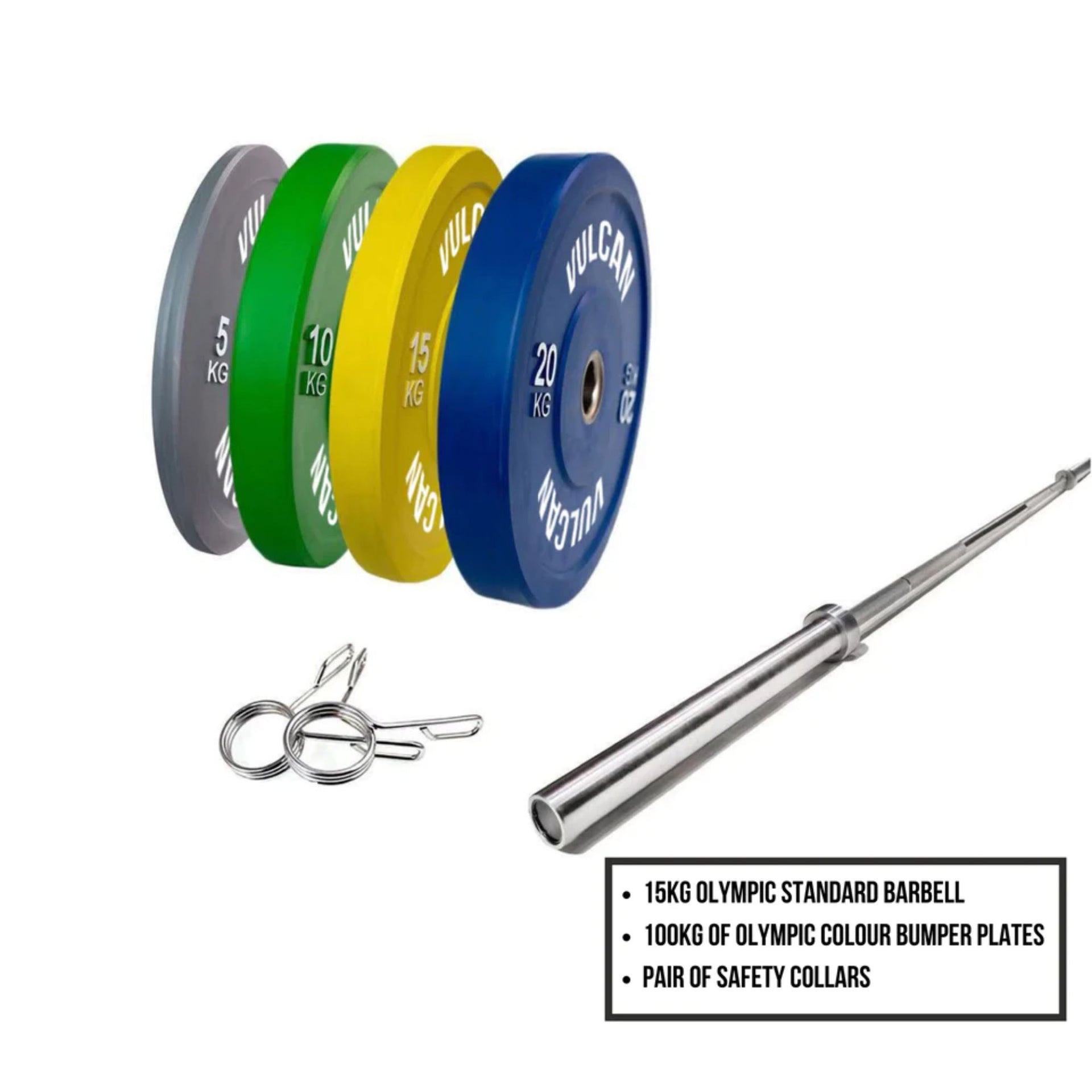 VULCAN Standard Colour Bumper Package (Olympic Barbell & 100kg Bumper Plates) | IN STOCK