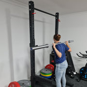 Gap between the holes is 25mm allowing for precise placement of safety arms and j-hooks. Particularly important for when setting your safety spotters to the correct height.
