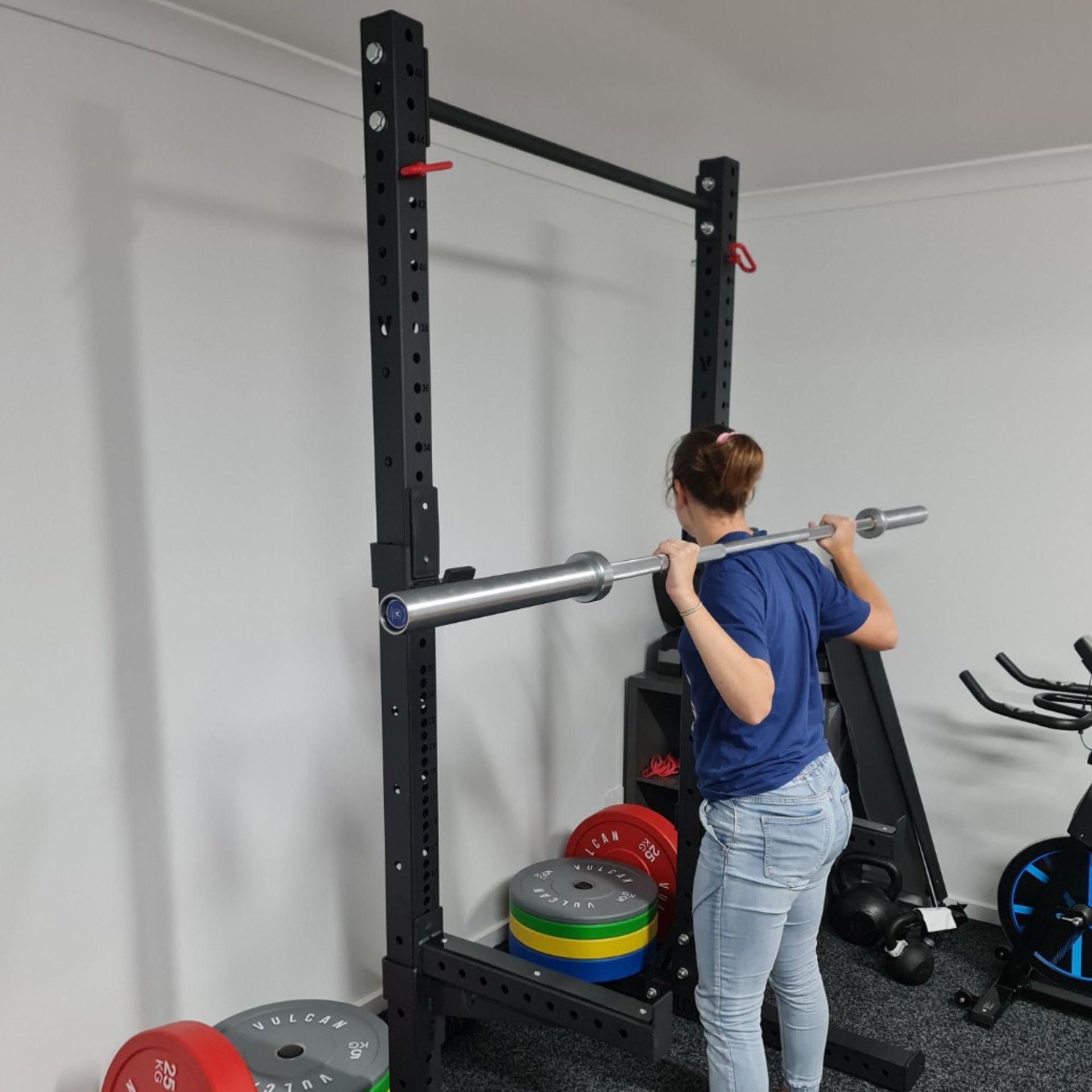 The rack is extremely stable weighing in at 60kg. Have you ever attempted a pull-up or heavy squat on a cheap, rickety squat rack and felt like it could fall apart any minute? This is NOT one of those racks!