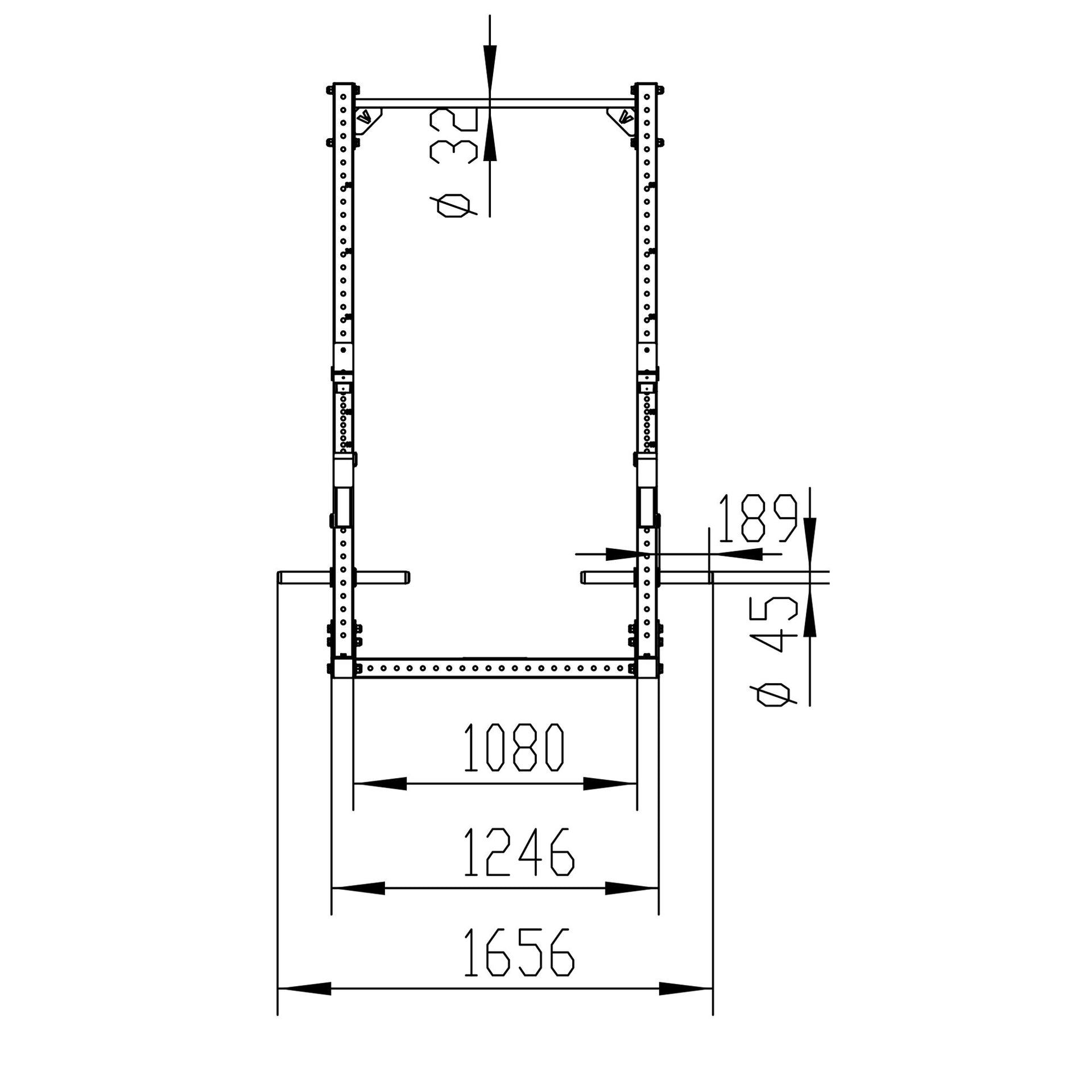 Gap between the holes is 25mm allowing for precise placement of safety arms and j-hooks. Particularly important for when setting your safety spotters to the correct height.