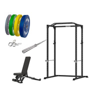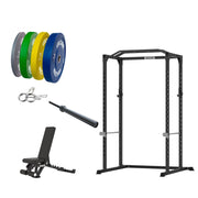 VULCAN Home Gym Power Cage, Olympic Barbell, 100kg Colour Bumper Weight Plates & Commercial FID Bench | IN STOCK