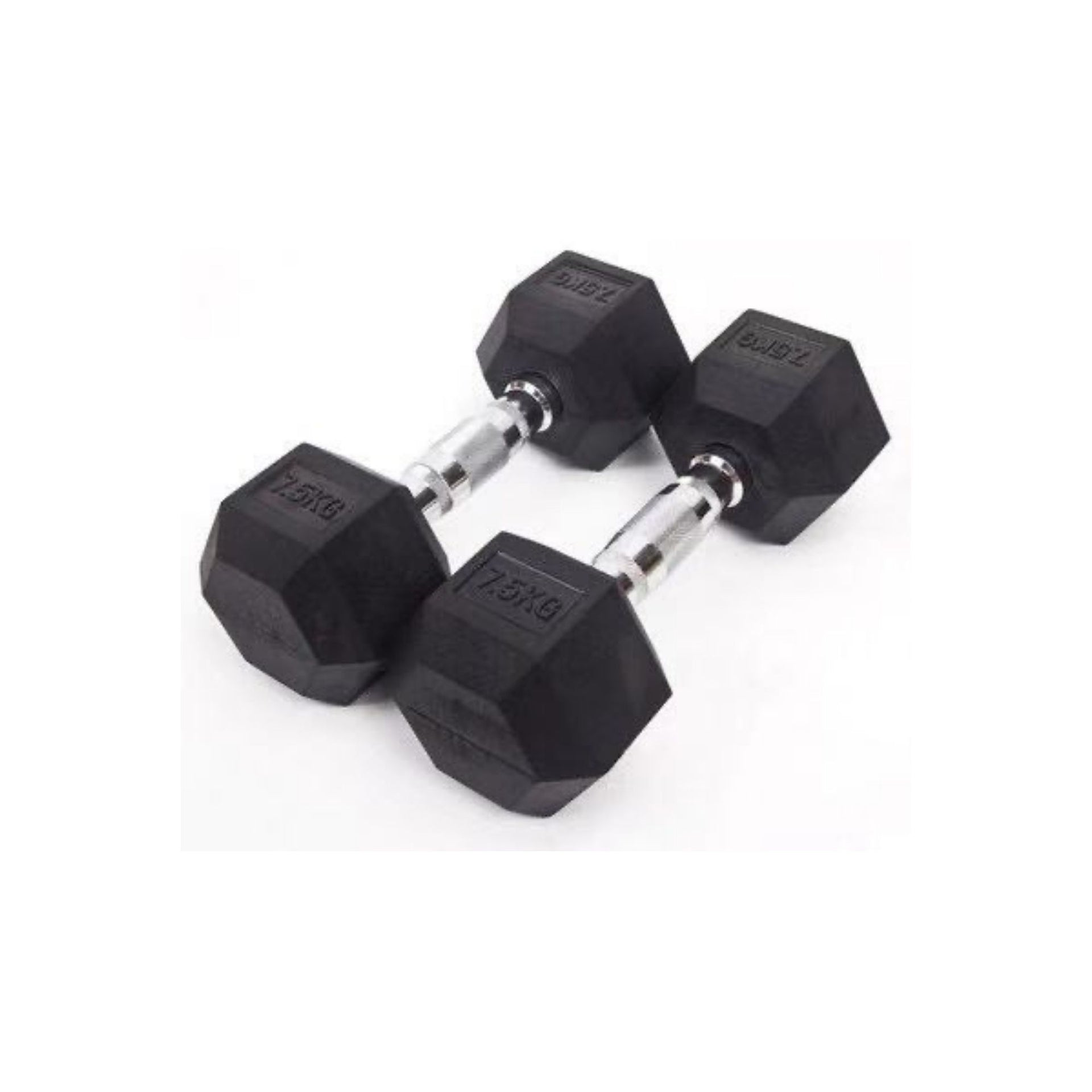 Classic, rubber coated hex design that is quiet and easy on the floors. The hex design also eliminates rolling and makes for easy storage in your gym.